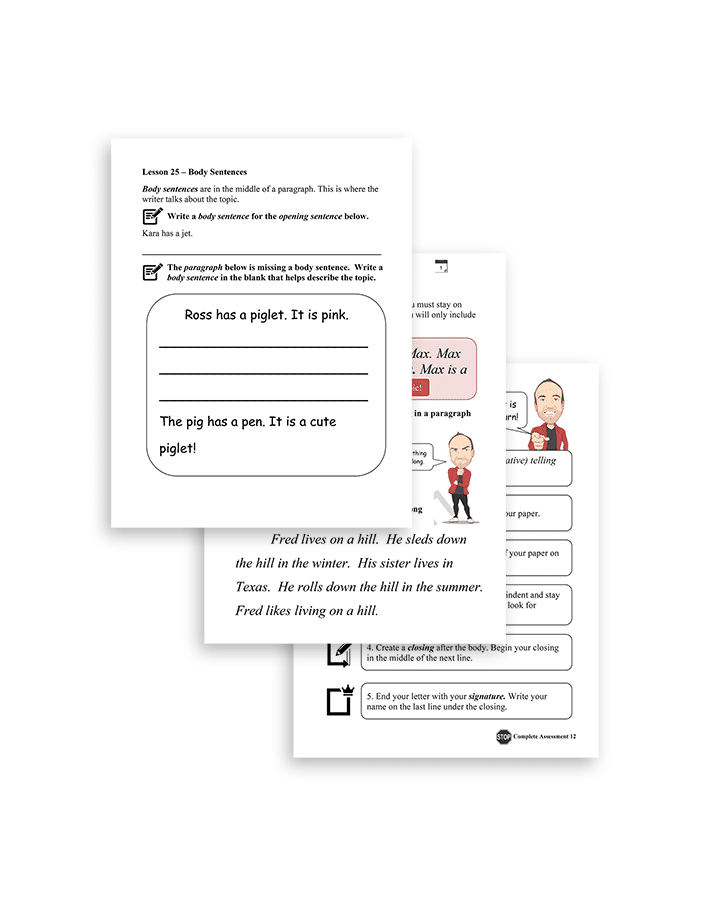 An answer key is presented in the back of the included Teacher Handbook. For compositions, sample answers for each step of the writing process and a final sample composition are presented to parents/teachers for comparison purposes. Checklists are included to be sure that the student met the composition requirements. Parents/teachers use the checklists and sample compositions to “grade” their student’s work.