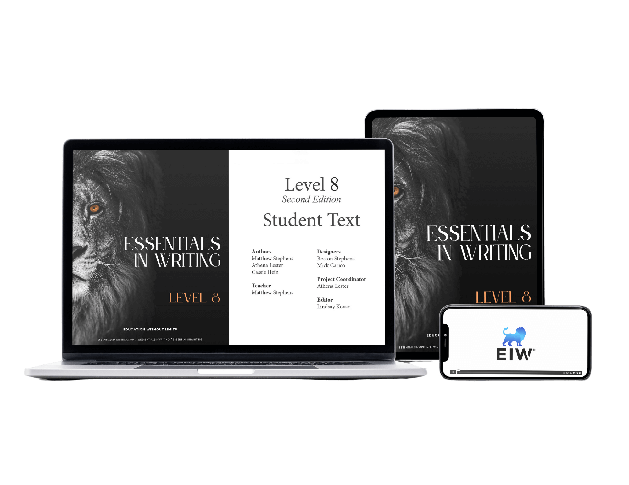 EIW™ Level 8 is a homeschool writing curriculum that features a slow, systematic approach for students aged 13-14 who want to learn how to write well. The step-by-step approach allows students to focus on small, daily assignments, so they don’t feel overwhelmed.